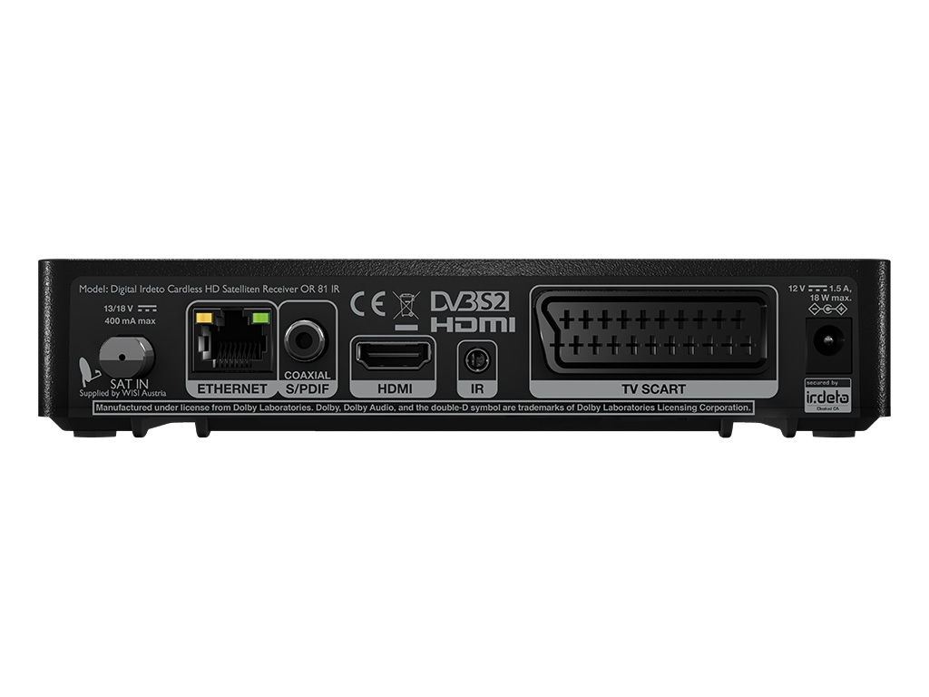 Der WISI OR 81 IR eignet sich zum Sat-Empfang der ORF-DIGITAL DIREKT Programme in bester HD-Qualität (ORF1 HD, ORF2 HD Bundesland, ATV HD, Puls 4 Austria, ORF III HD, Sport+ HD, Servus TV Österreich HD, etc. ), SimpliTV SAT (Pro7 Austria, Sat.1 Austria, etc. in HD. Abo erforderlich), sowie alle frei verfügbaren HD und SD Programme. Mit Dolby® Digital Plus erleben Sie die Programmvielfalt auch in bester Tonqualität.