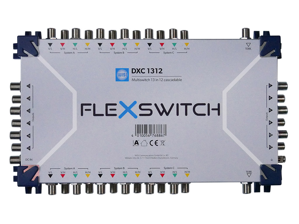 Der DXC 1312 ist ein Kaskaden-Multischalter mit 13 Eingängen zur Verteilung von 12 Satelliten Polarisationsebenen und terrestrischer Signale. Die Ebenen stehen an 13 Kaskadenausgängen für nachfolgende Multischalter zur Verfügung. An den 12 Teilnehmerausgängen können handelsübliche DVB-S/S2 Receiver oder TV-Geräte mit integriertem Empfänger betrieben werden. Eingespeiste terrestrische Signale wie DVB-T/T2, DAB oder UKW stehen ebenfalls an jedem Teilnehmerausgang zur Verfügung. Der DXC 1312 überzeugt mit einer niedrigen Anschlussdämpfung die durch den aktiven SAT- Zweig realisiert wird. Über den passiven terrestrischen Zweig können Multimediale-Dienste wie „LAN over Coax“ oder Signale von Gemeinschaftsanlagen eingespeist werden. Die LNB- Spannungsversorgung wird über die Stammleitungen oder über die optional erhältlichen externen Netzteilen DXP 1812 oder DXP 1830 sichergestellt.