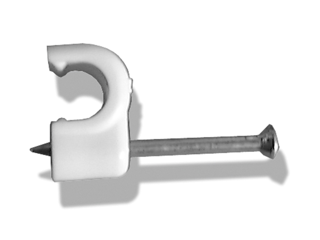 Rundschelle mit vormontiertem Nagel Verwendbar für Kabel : 6 mm Abmessung (HxBxL) : 8 x 7 x 13 mm Nagellänge : 25 mm Nageldurchmesser : 2 mm Werkstoff Rundschelle : Polyethylen, halogenfrei Werkstoff Nagel : Stahl, verzinkt Farbton: hellelfenbein RAL: 1015 (ähnlich)