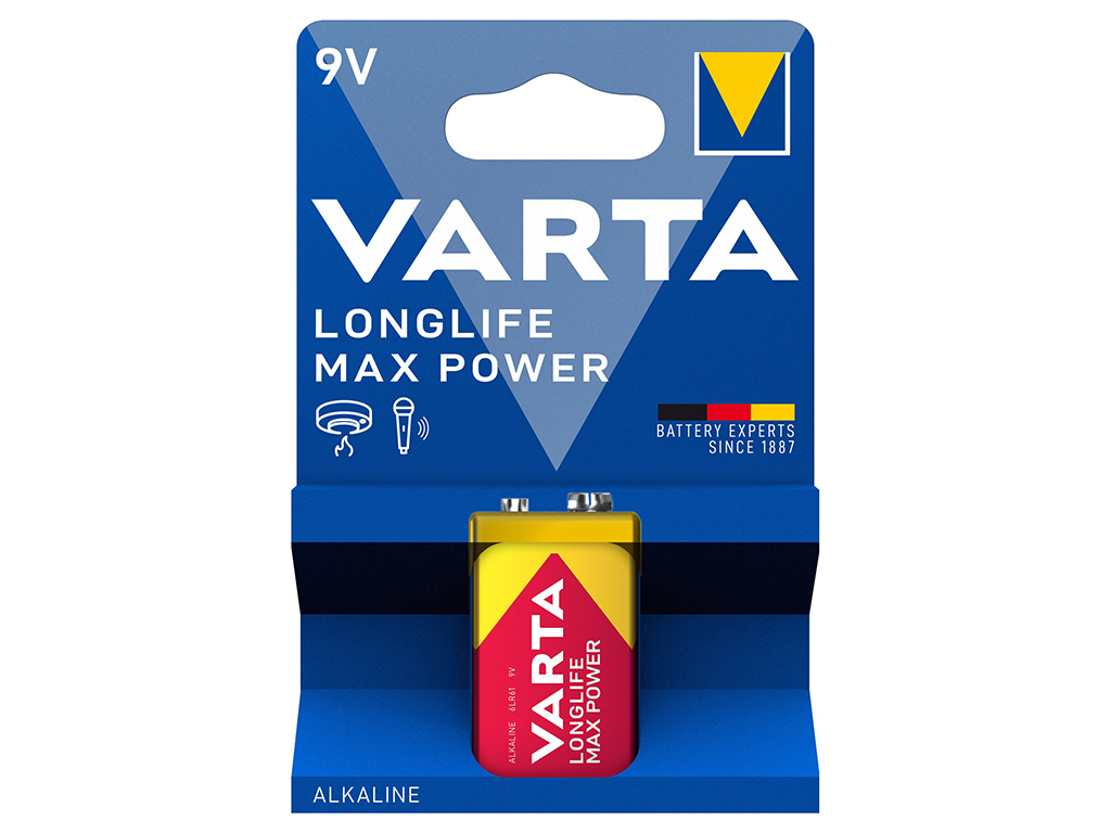 Technische Daten: Primär Alkali Mangan / 9 V DC / Varta Type: 04722, IEC Baugröße: 6LP3146/6LR61